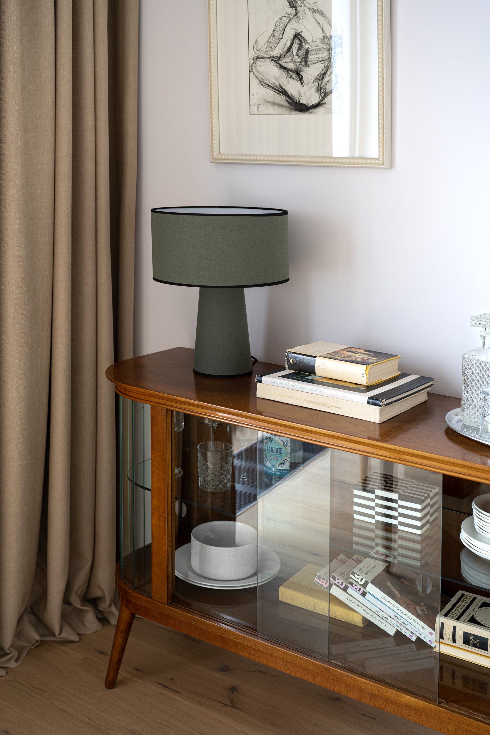 Большая часть мебели в квартире винтажная. Винтаж изначально был в референсах, что сразу подкупило надежду, ни один проект которой не обходился без старых вещиц. «Покупатели разделяют эту мою любовь и с удовольствием участвуют в процессе охоты на Авито. Предметы с историей придают интерьеру глубину и индивидуальность, что особенно ценно в минимализме».