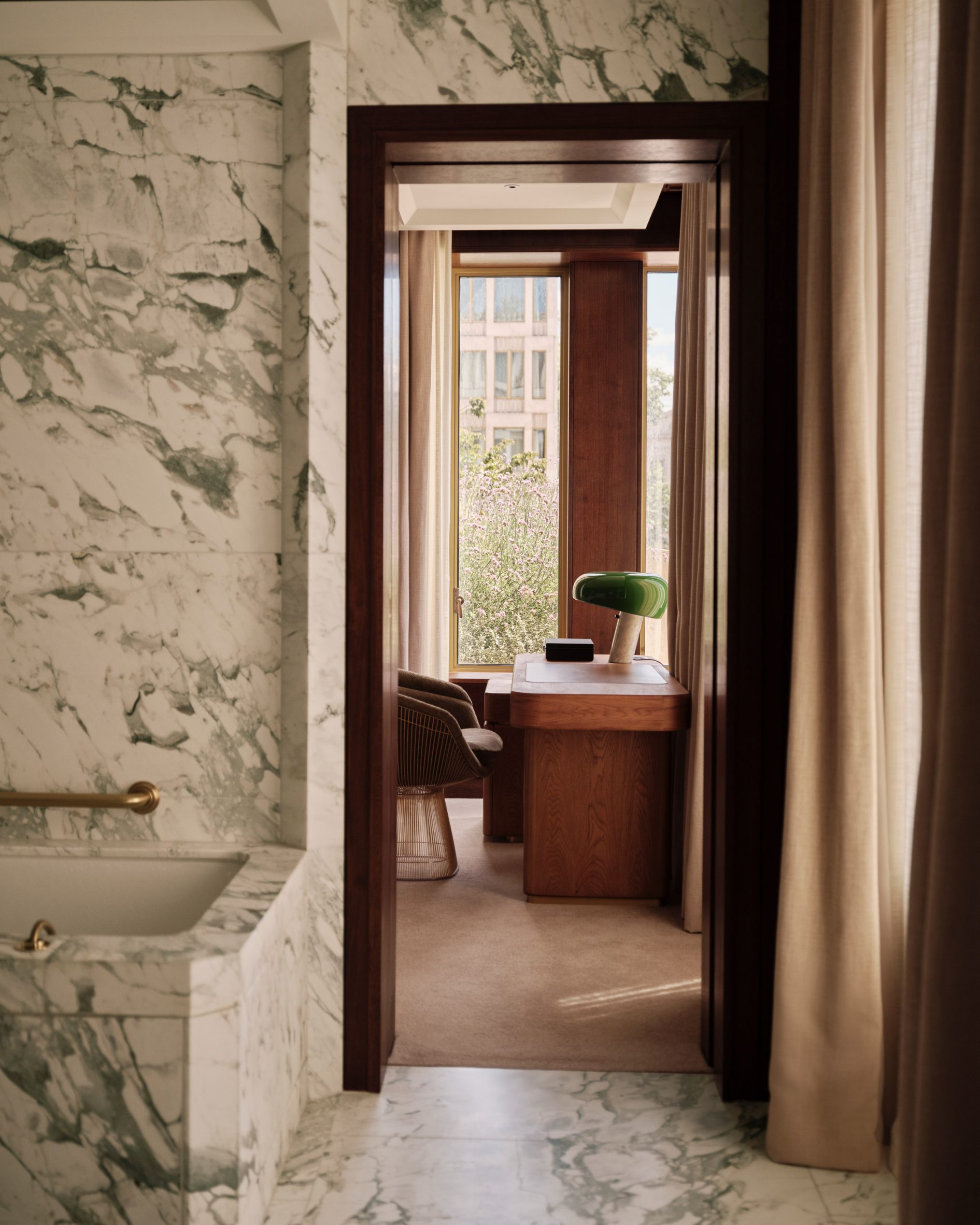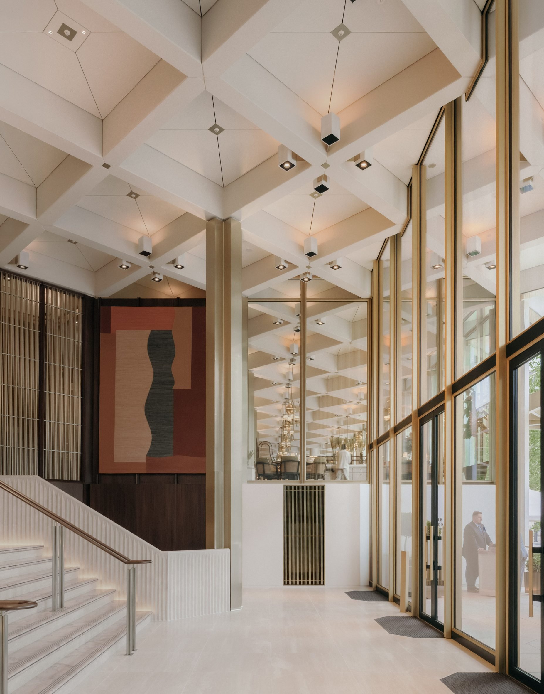 Лондонская студия David Chipperfield Architects превратила бывшее здание посольства США в Мейфэре в отель Rosewood Chancery. Прежде всего, команда убрала ограждения, гарантировавшие безопасность дипмиссии, и создала зону, откуда на первый этаж выходят магазины, ресторан и бар. Фасад, спроектированный Ээро Саариненом, остался неизменным: архитекторы восстановили каменные оконные рамы и венчающую здание скульптуру позолоченного орла работы художника Теодора Рошака.