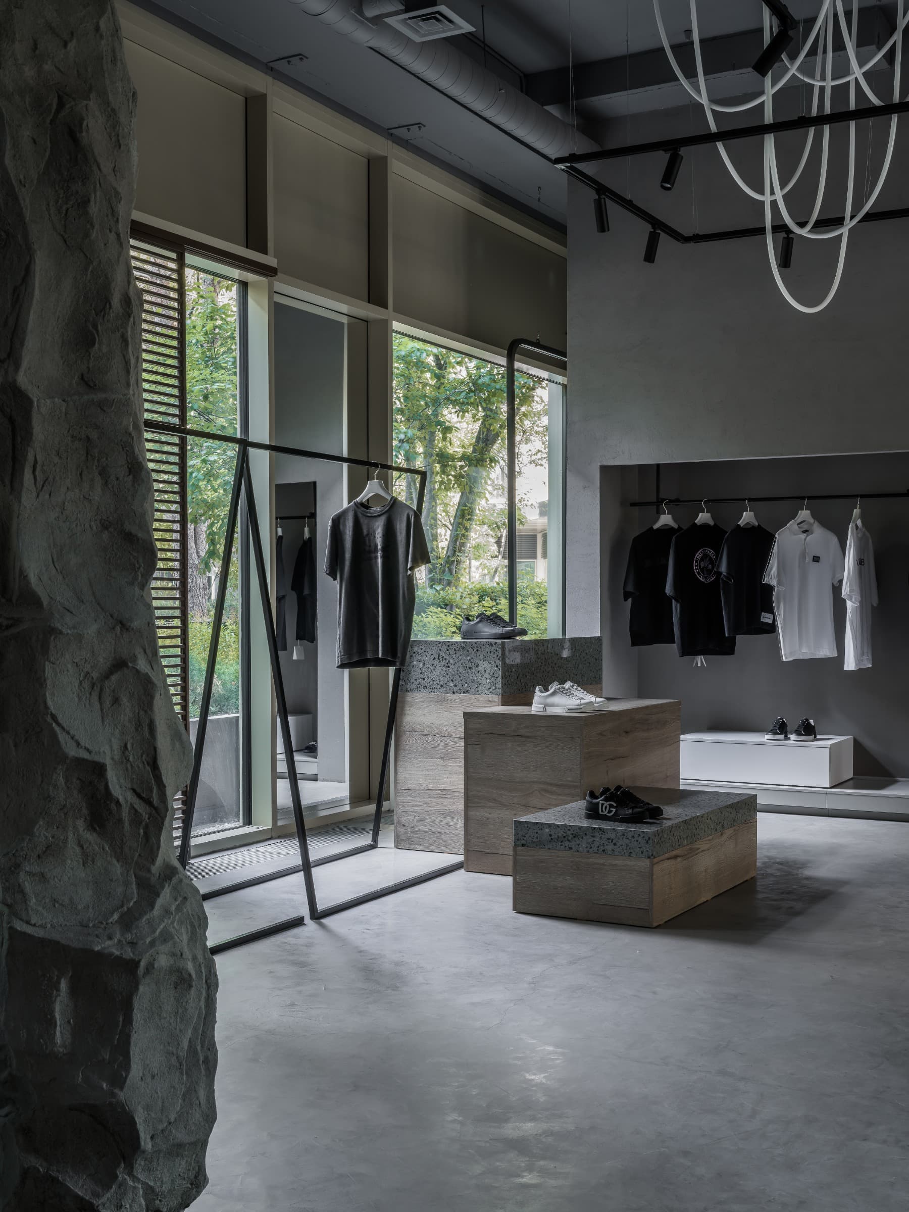 Maria-Art Design Studio, возглавляемая Мария Чудиновой, разработала жестокий интерьер мультибрендового бутика Ple Ple в Тюймене. «Эстетика бутика относится к Италии, но не та, кто полон брендов и окон», — говорит автор проекта. — Нет прямых ассоциаций с роскошью, блестящей и яркой модой. Напротив, внутренняя часть поглощала образы природы, архитектурную простоту и принцип ремесла, характерный для защиты Апеннина. Легкие, не связанные параллели создают особую атмосферу комфорта, глубины и тактичности. «