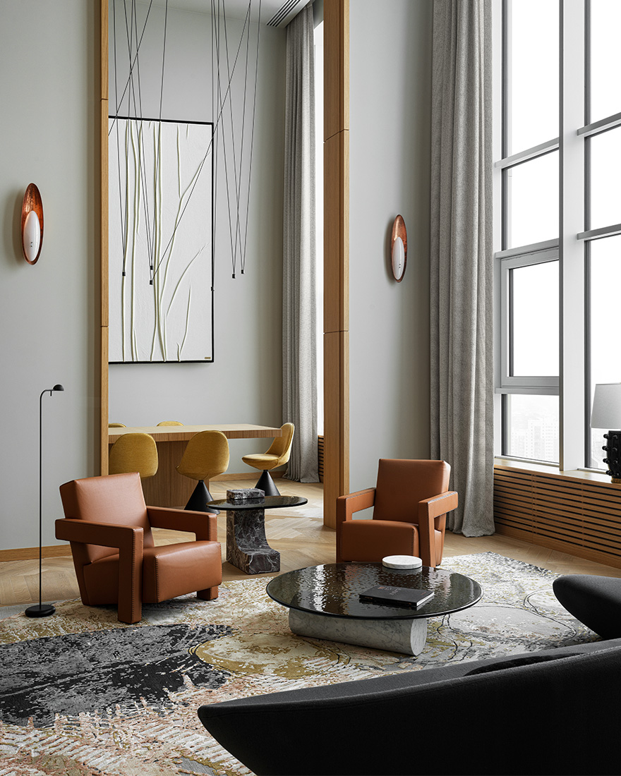 «Что касается мебели, выбор пал на итальянские бренды. Самым ярким предметом стал специальный диван в гостиной, спроектированный Захой Хадид. Очень хорошо работает люстра Vibia — высота потолка помогает ей полностью раскрыться». В результате получился именно такой интерьер, о котором мечтала клиентка, успешная и креативная бизнес-леди, выбравшая эту квартиру из-за ее нестандартности. «Она была готова к смелым решениям и экспериментам. Редкий и замечательный случай полной уверенности в работе», — резюмирует Анна.