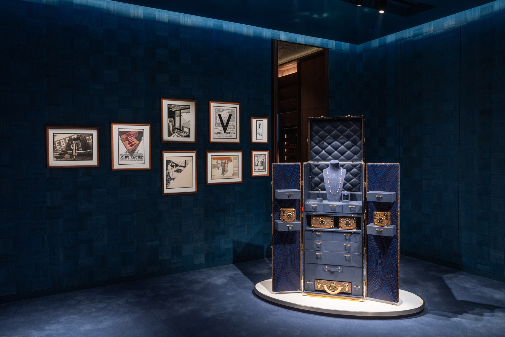 В бутике представлены все коллекции модного бренда, включая кожаные аксессуары, украшения и предметы интерьера. На верхнем этаже находится первое кафе Louis Vuitton в Пекине, спроектированное собственной командой дизайнеров компании в сотрудничестве с базирующейся в Барселоне студией Astet Studio. В магазине также есть четыре отдельных VIP-зала и терраса на крыше с баром.