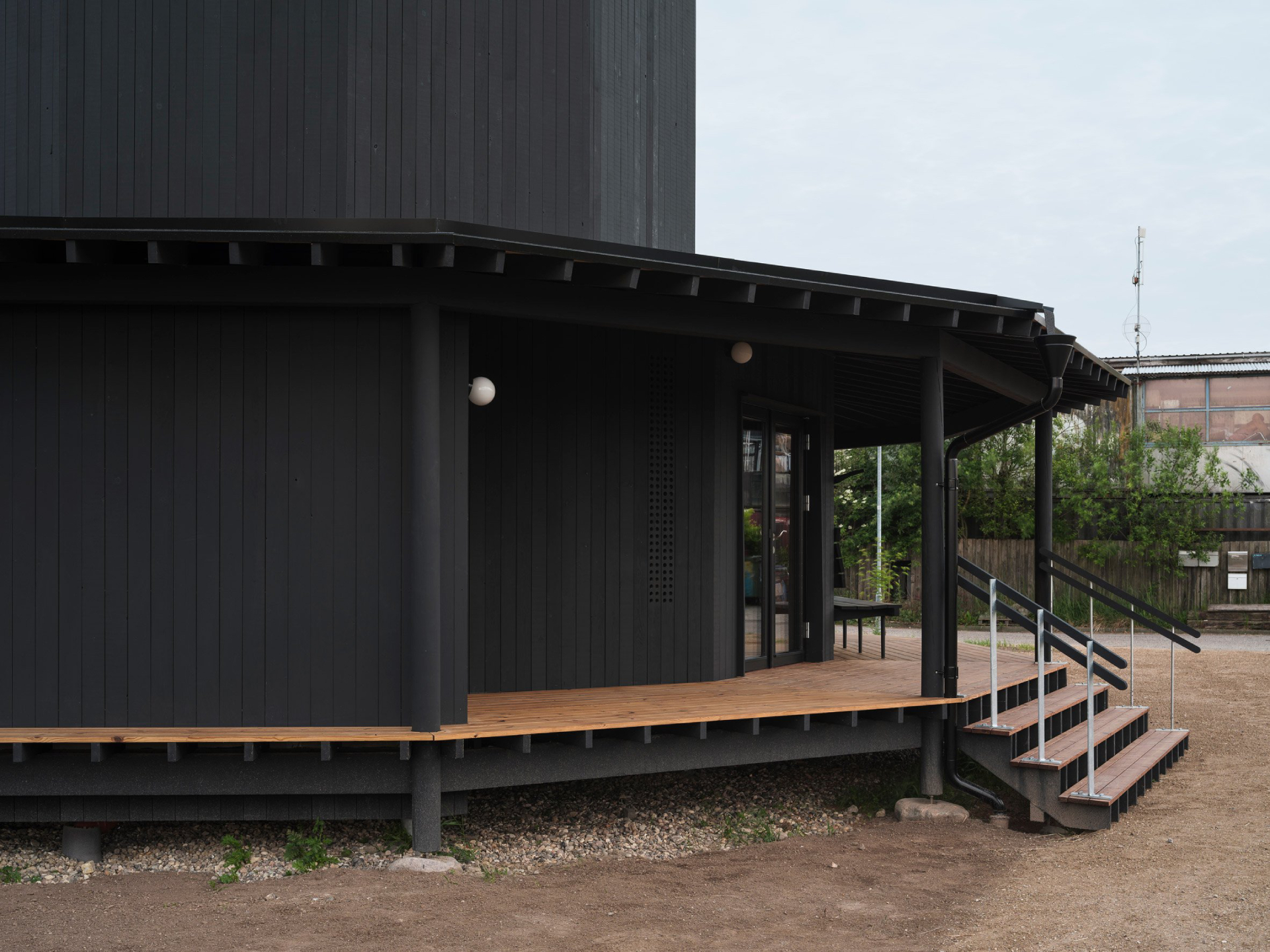 Альтернативой традиционной конкуренции является веранда с колоннами, создание здания вокруг окружности — различные офисные здания также были на этом внешнем кольце, что позволило сделать главную комнату максимально свободной. «Окружающая колоннада превращает процесс прибытия во что -то. Это больше, чем просто вход: здесь мы предлагаем пространственную глубину, которая помогает разуму переключаться из мира в концентрированную атмосферу», — отметил Нильсен.