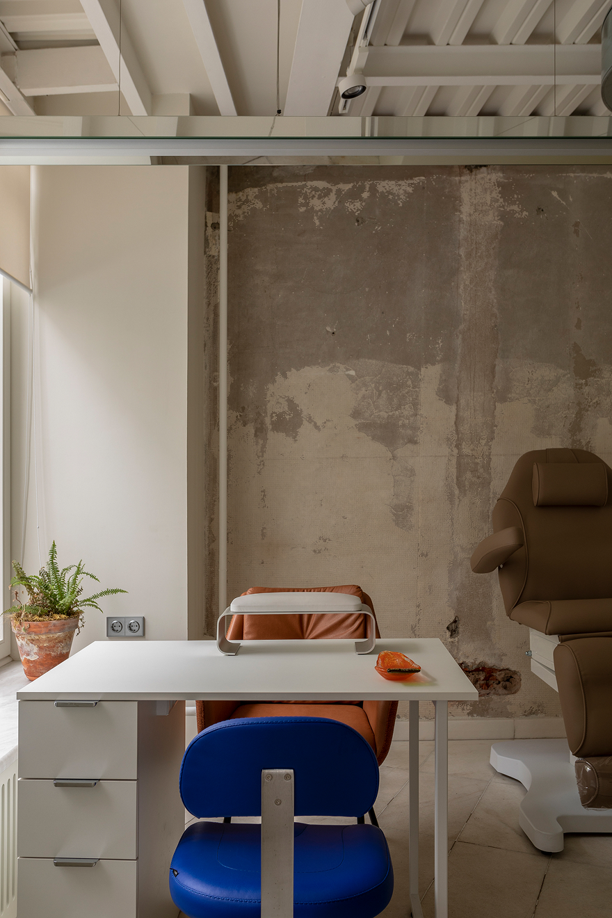Источник оказался типичным для конца 1990-х годов: кривые стены, венецианская штукатурка, но на полу было плюс натуральное мрамор, сплошная лестница из нержавеющей стали. Среди перегородков больше не было шариков, но были следы бывшей формы стен — они решили спасти их как часть истории. Было также желание вернуть первую высоту здания, но совпадение было под стражей, и проект уже был согласован в мусковите — реконструкция потребует нового одобрения.