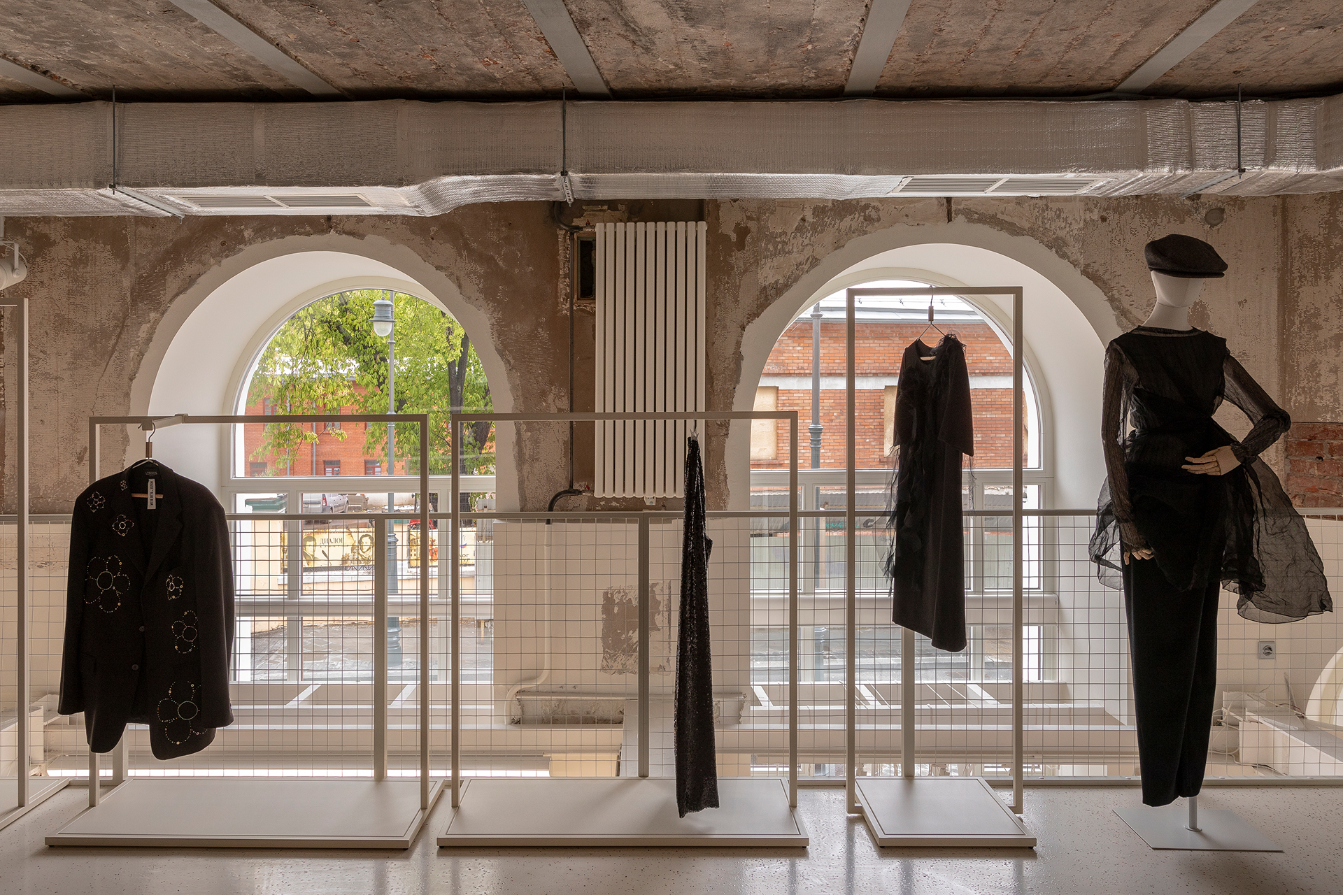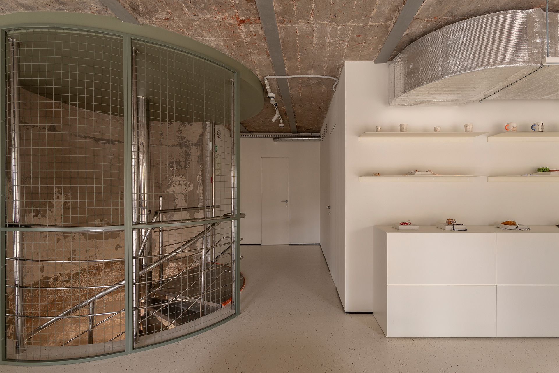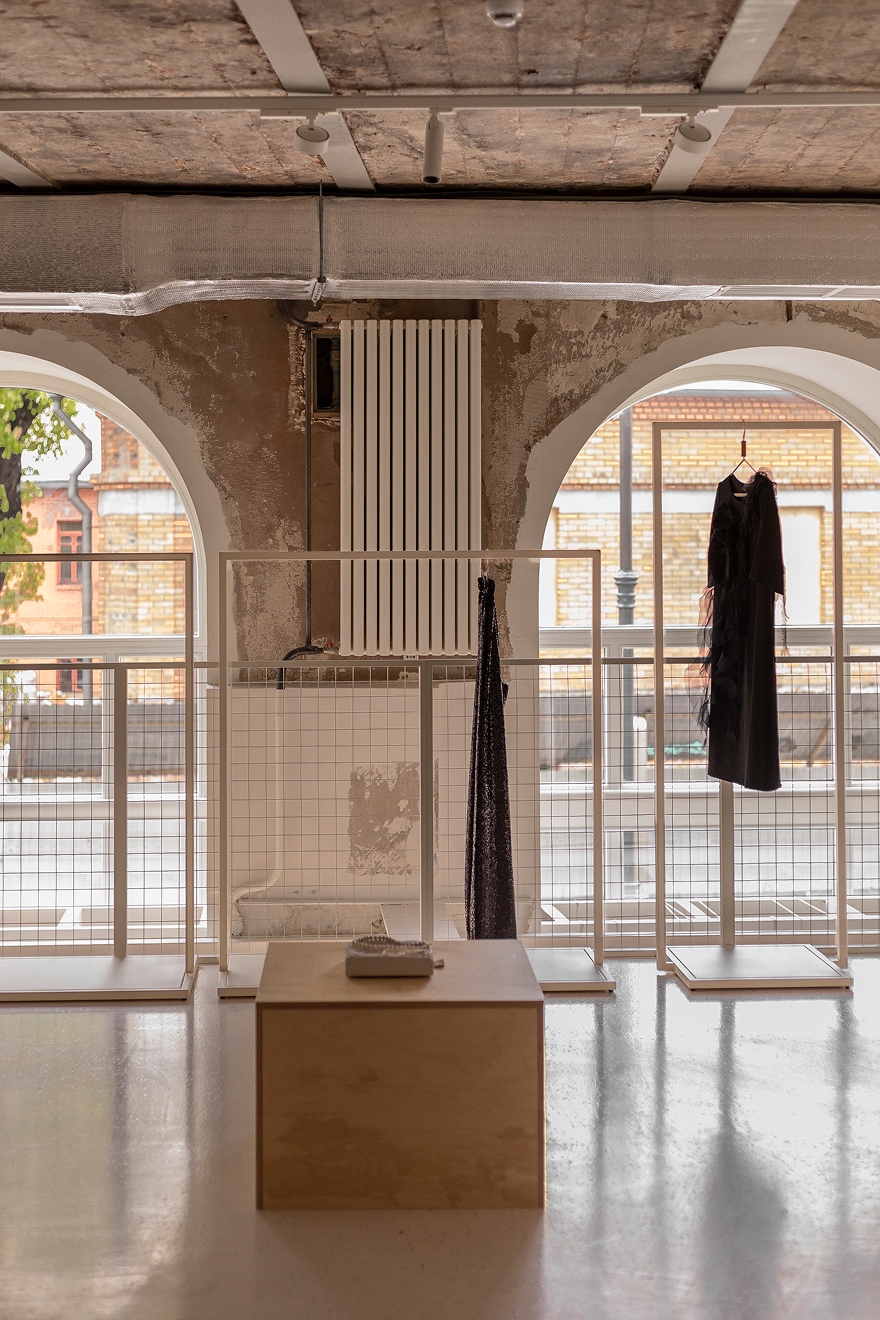 Пространство с поверхностью 400 квадратных метров. Счетчики находятся в стенах объекта культурного наследия — в бывшем доходном доме Микини в начале 20 -го века. Раньше была пекарня с высокими потолками и небольшим мезонином, в пересечении — леги — банк. Затем пространство было разделено на два этажа, каждый с высотой 2,5 метра.