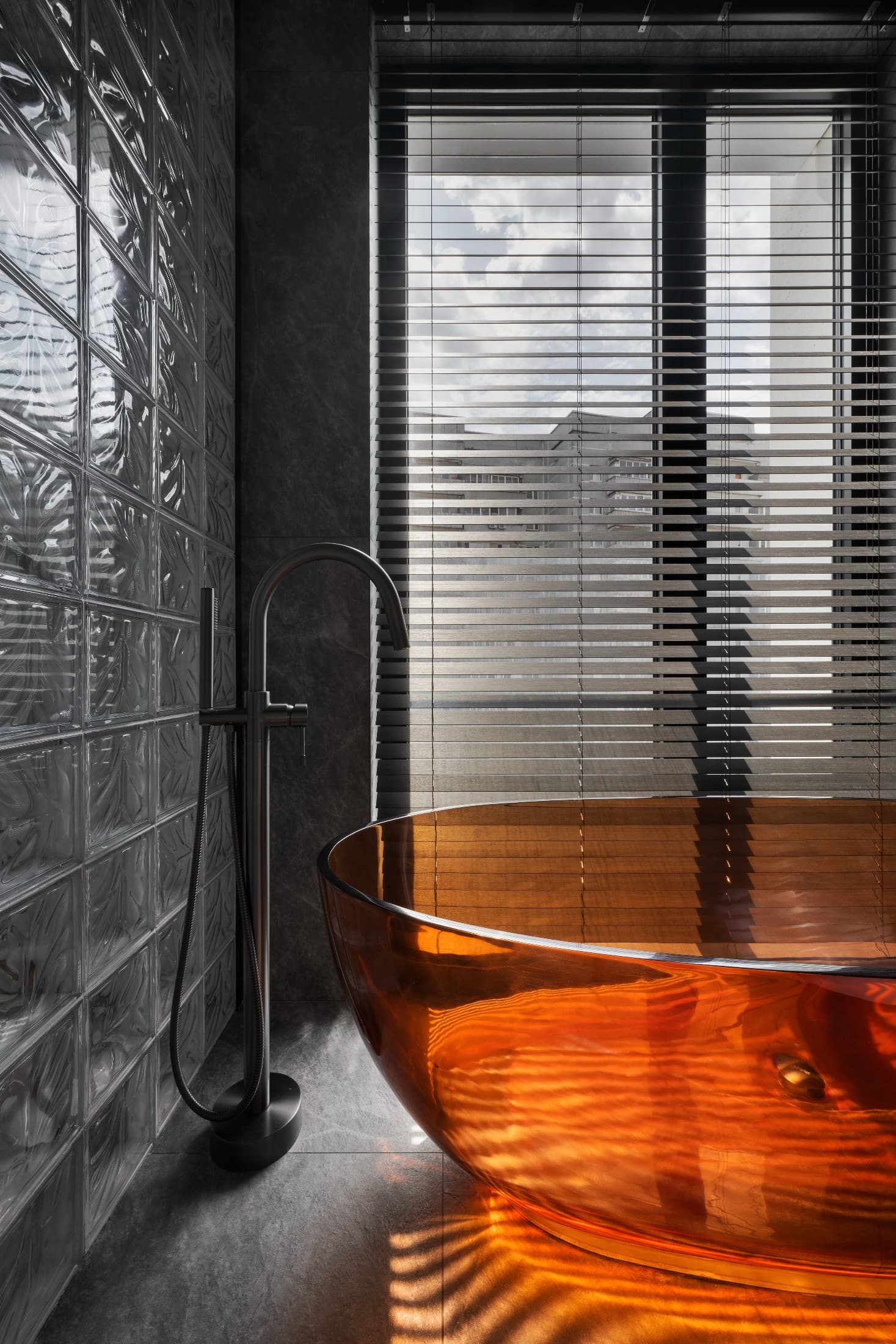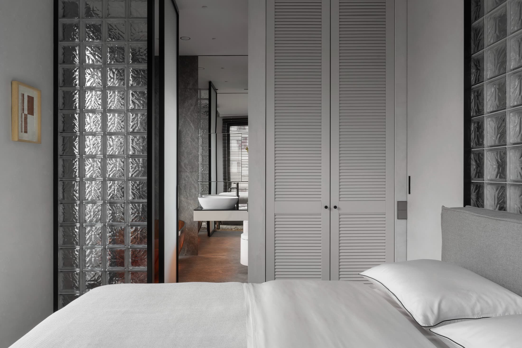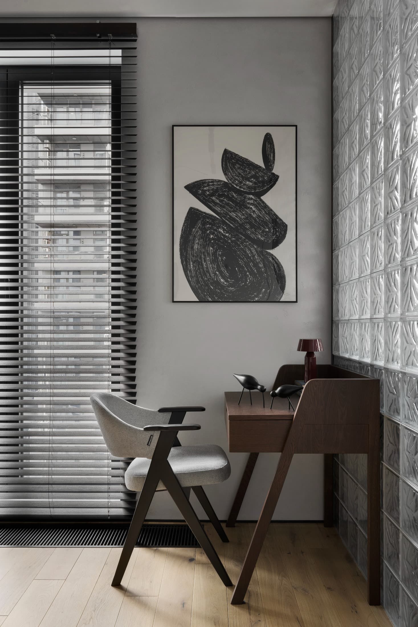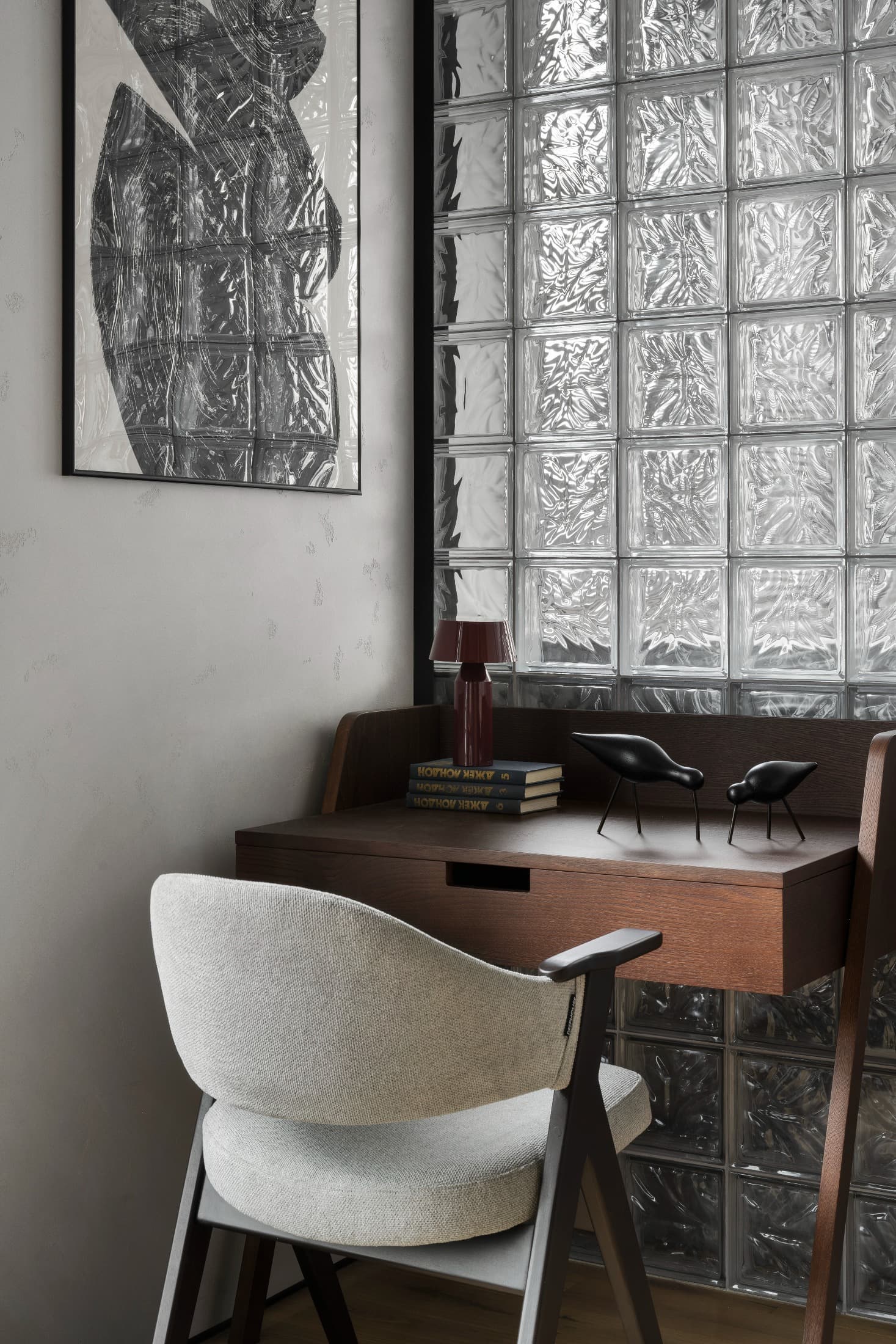 «За белой дверью находится просторная гардеробная с ползущей зоной, объем которой пространство не перегружено благодаря обратной системе открытия. Основным моментом проекта был полностью разнообразный хаммам — редкое решение для квартир такого счетчика. Он расположен за черной стеклянной дверью с нетипично высокой фрамой, что помогло».