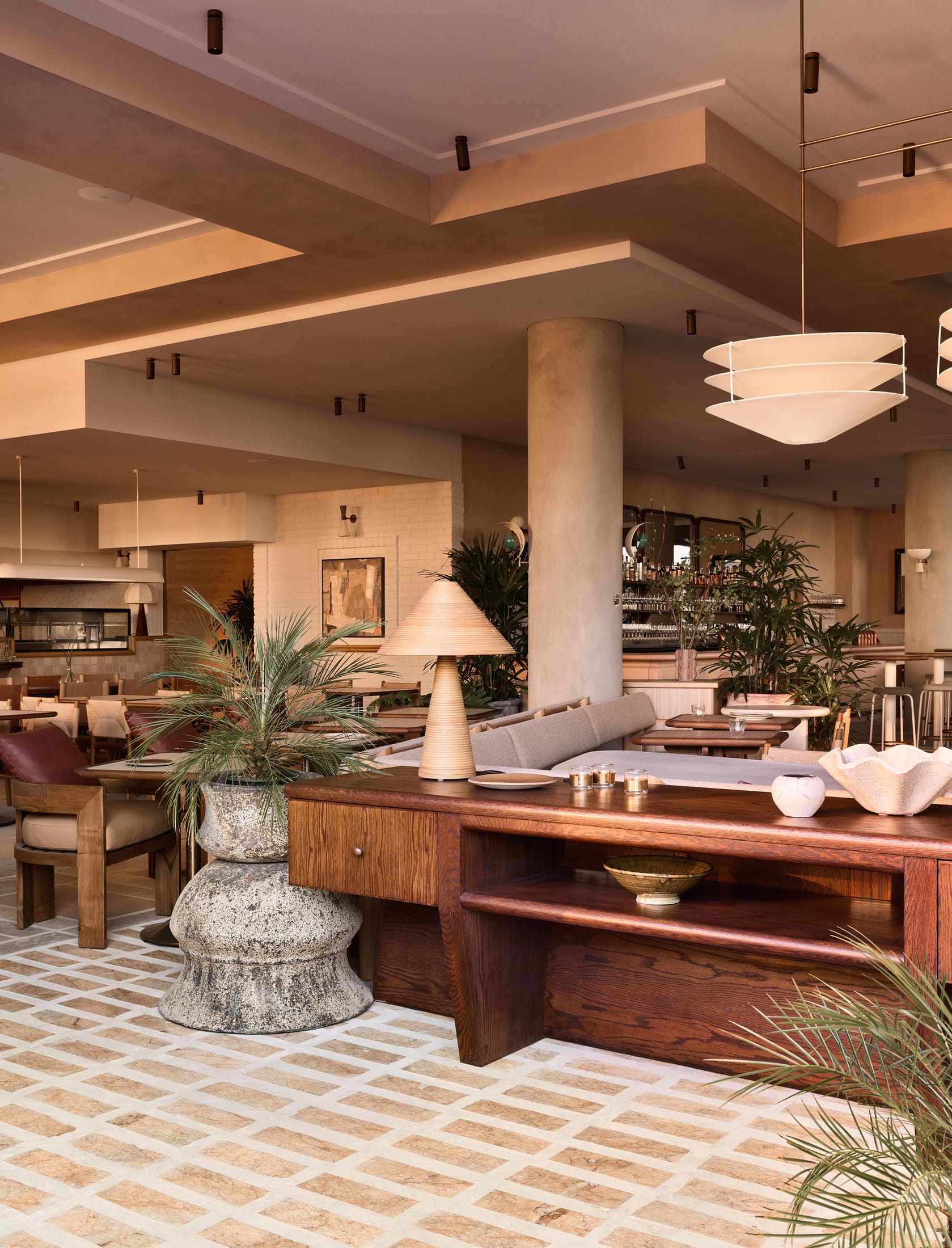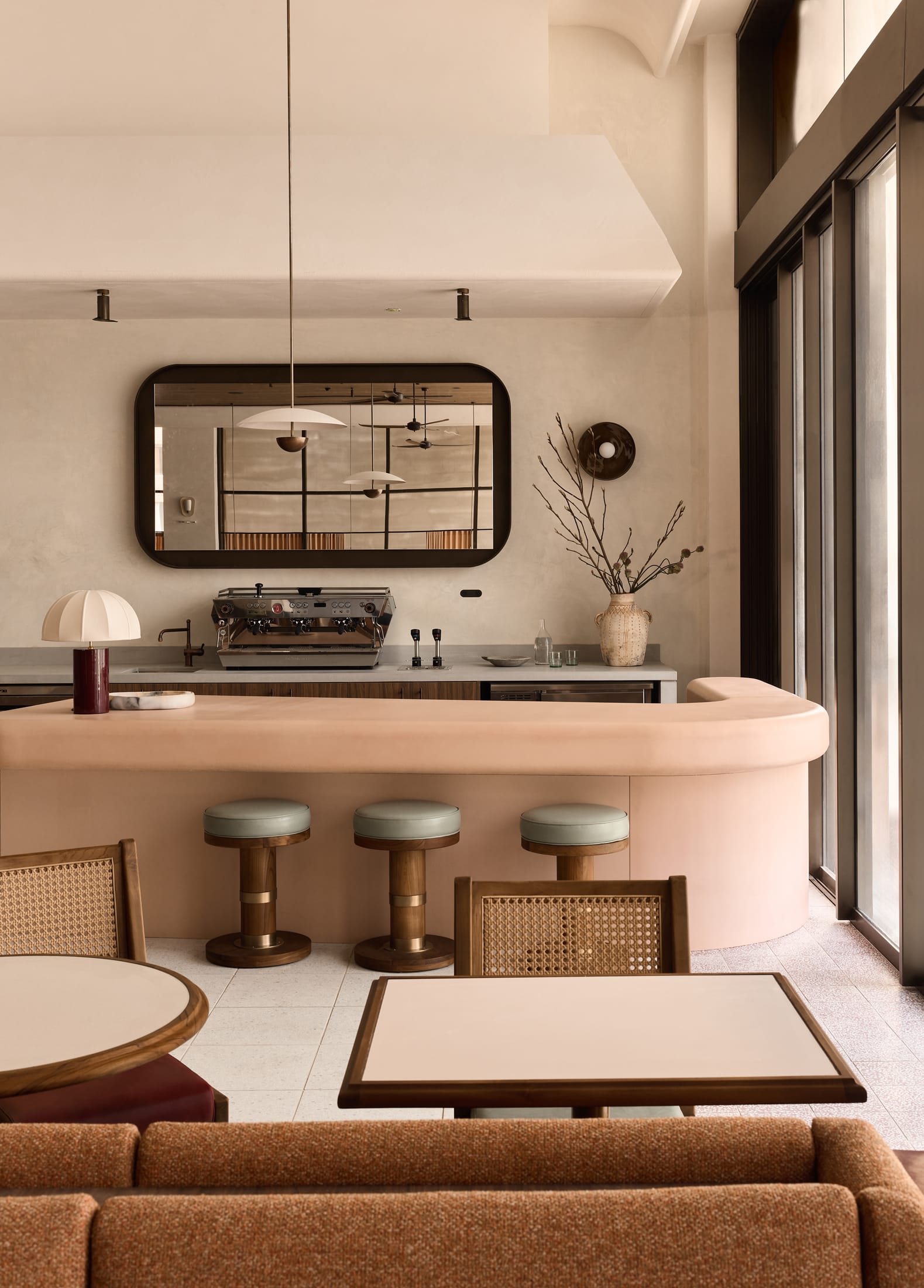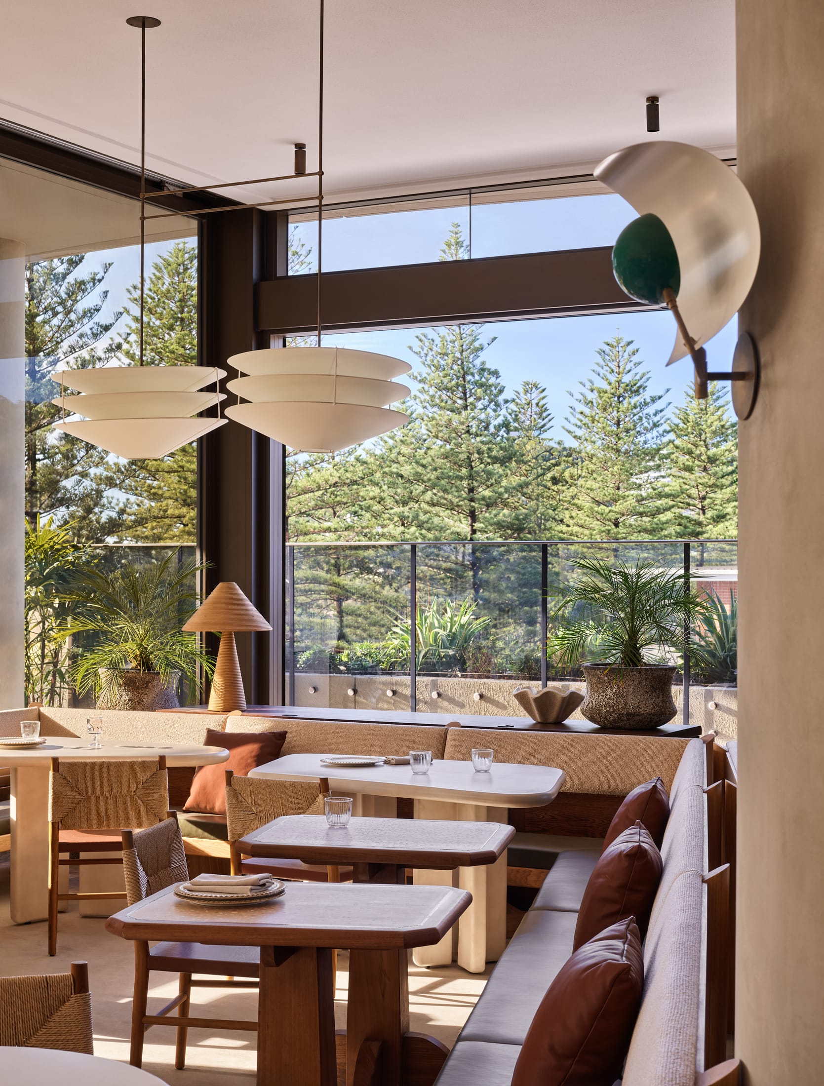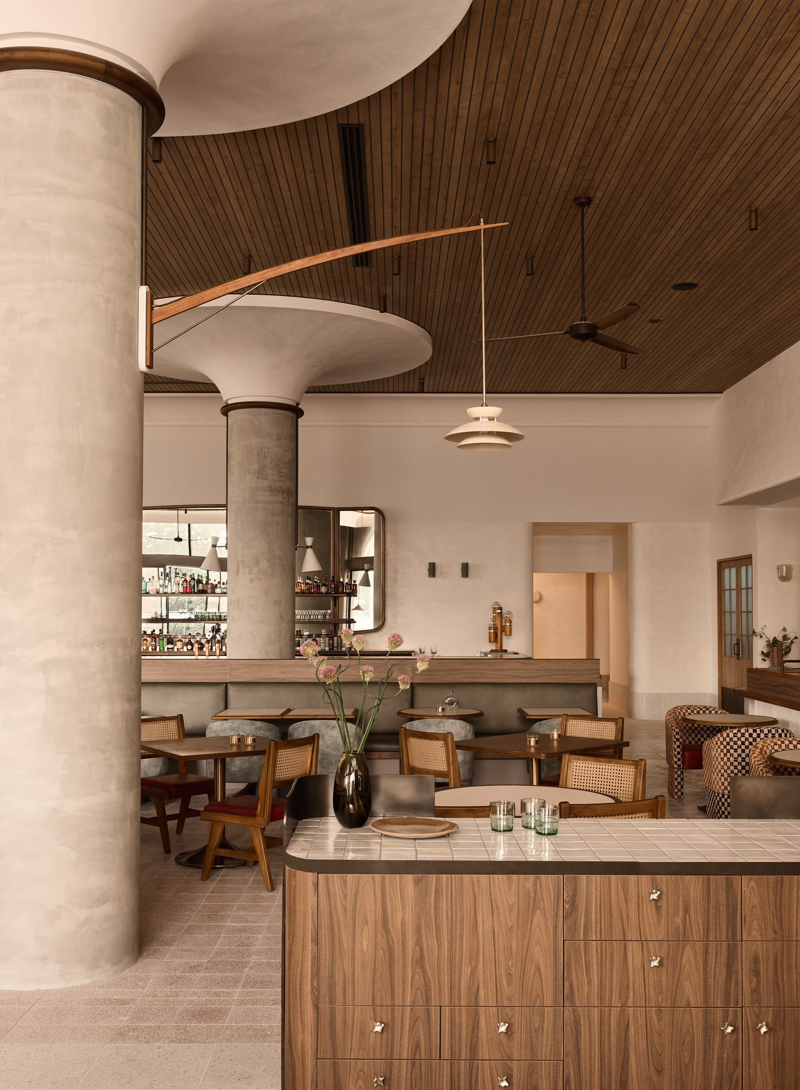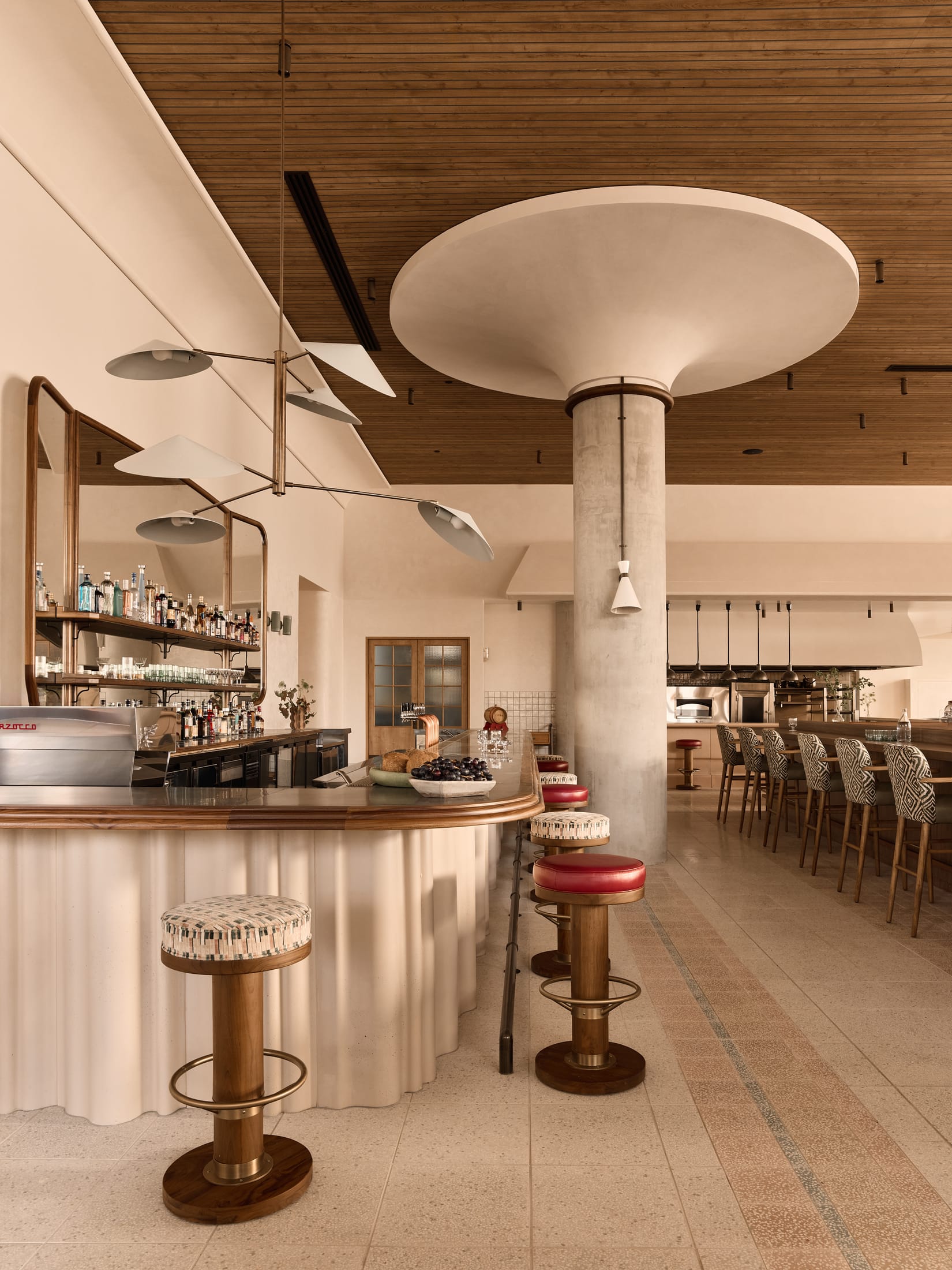 Mondrian Gold Coast — первый отель культовой сети отелей в Австралии. Две 24-этажные башни, спроектированные Fraser & Partners, расположены на Берли-Бич, популярном месте для серфинга, сочетающем в себе роскошную атмосферу курорта Голд-Кост, роскошные бары и бутики и богемную атмосферу прибрежного города Байрон-Бей. Именно эту непринужденную изысканность студия Alexander & Co стремилась передать в интерьерах двух ресторанов отеля, черпая вдохновение в дизайне середины 20 века и средиземноморском стиле.