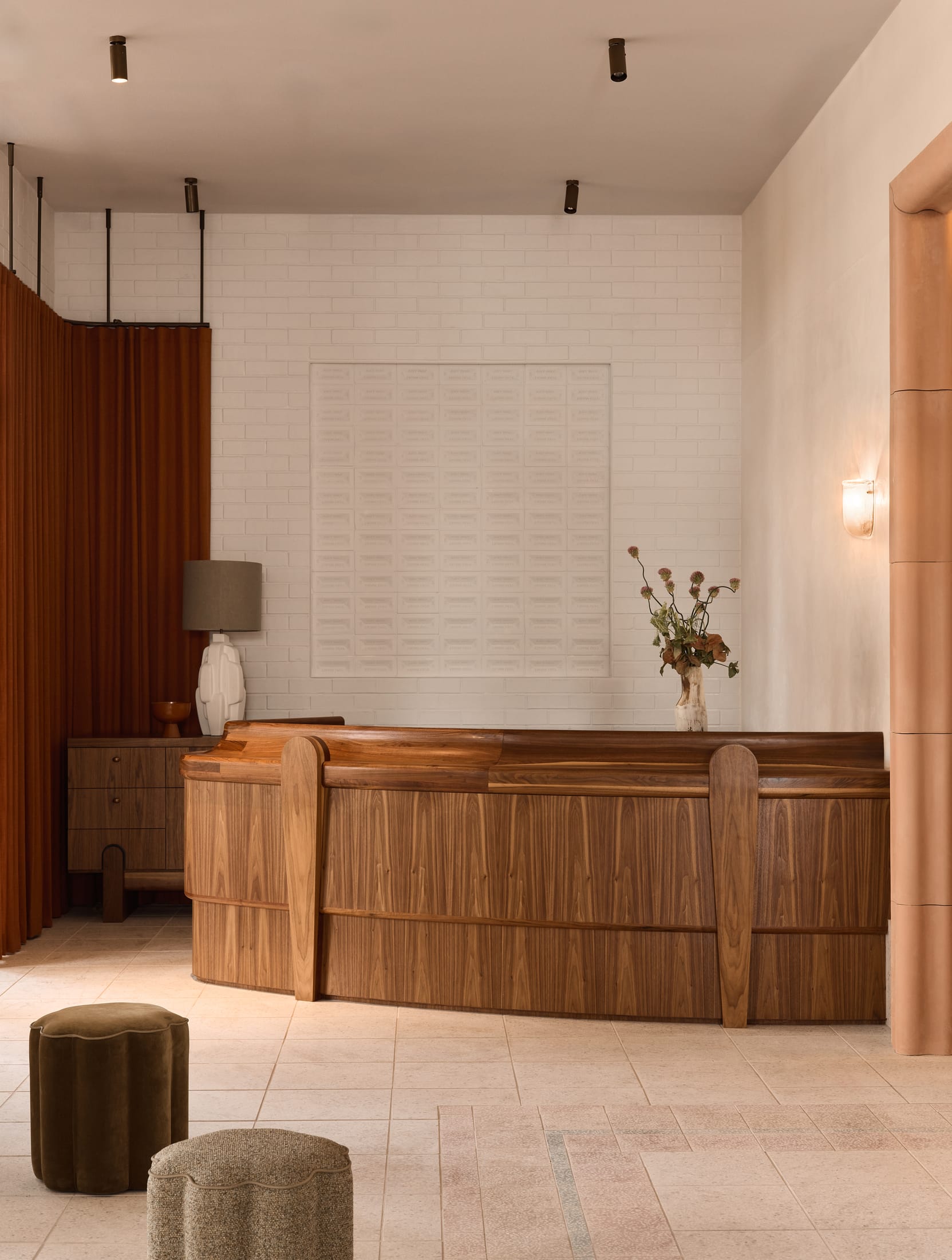 Благодаря природным текстурам, ремесленным ремеслам и богатой палитре коричневого, бордового и зеленого цвета команде Alexander & Co удалось создать художественное пространство, неразрывно связанное с окружающим контекстом, и в то же время обладающее изысканностью, ожидаемой от отеля международного бренда.