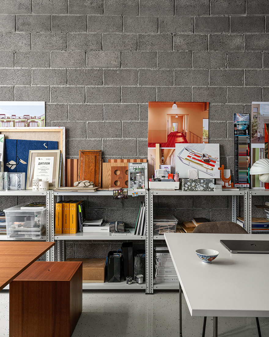 Впервые я посетил сайт 14 февраля 2023 года по приглашению команды Фонда «Доступный офис». Клиент заявил, что хочет купить здание, чтобы сохранить его в первозданном виде. Мы привыкли считать дореволюционные интерьеры ценными, но позднесоветские интерьеры до сих пор не всеми воспринимаются как наследие. Это уникальная ситуация: здание ни разу не ремонтировалось; даже мебель, которую мы интегрировали в отдел продаж и столовую, сохранилась. Мы долго ходили по прилавкам и заказчица даже «проверила» меня на вкусовую совместимость. Когда стало понятно, что мы идеологически совпадаем, меня пригласили заниматься дизайном.