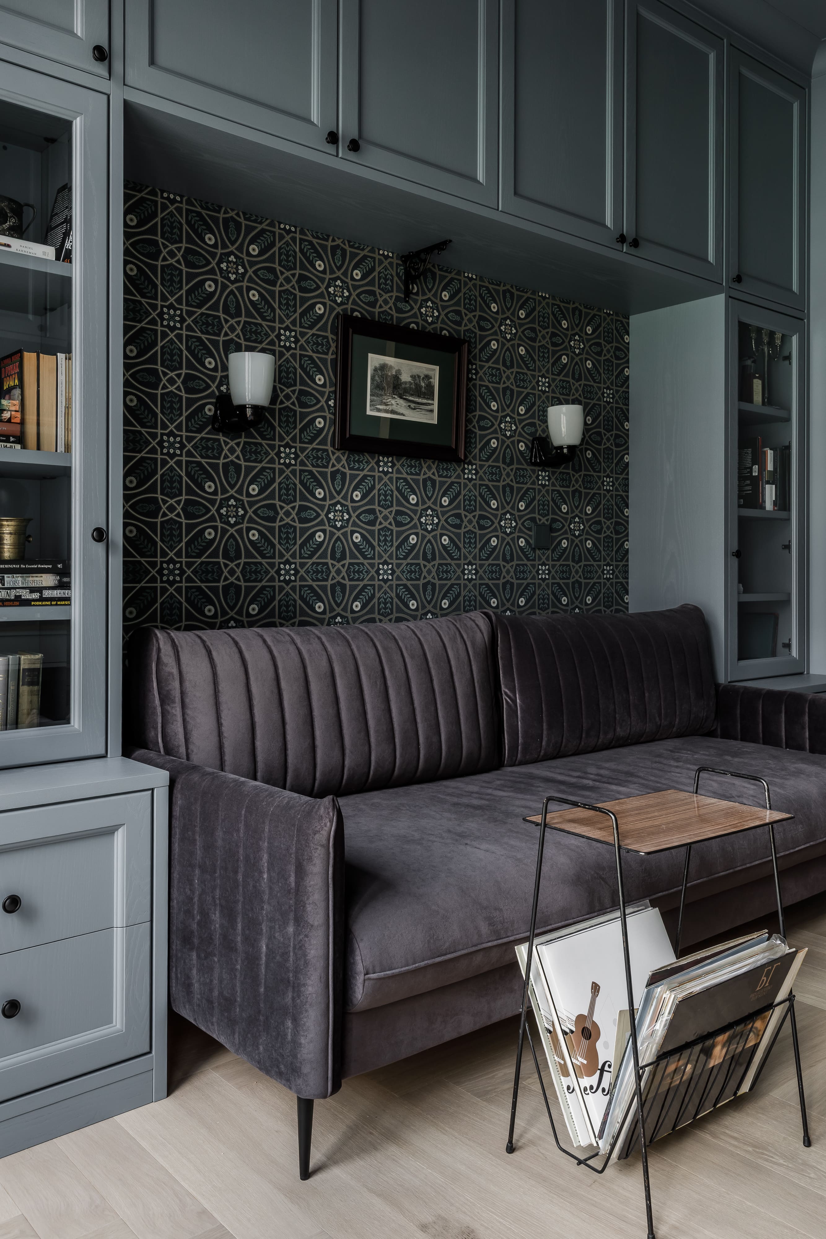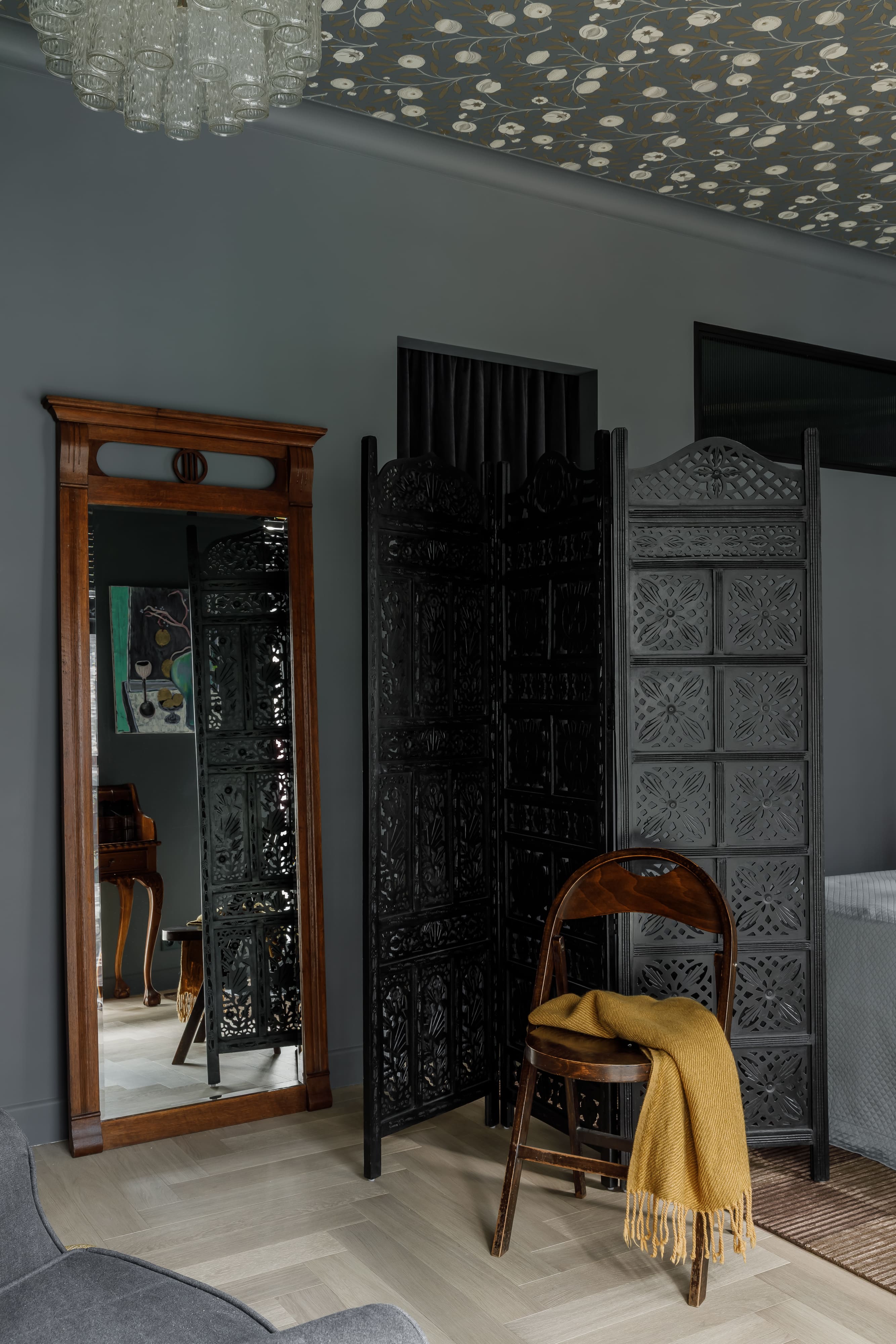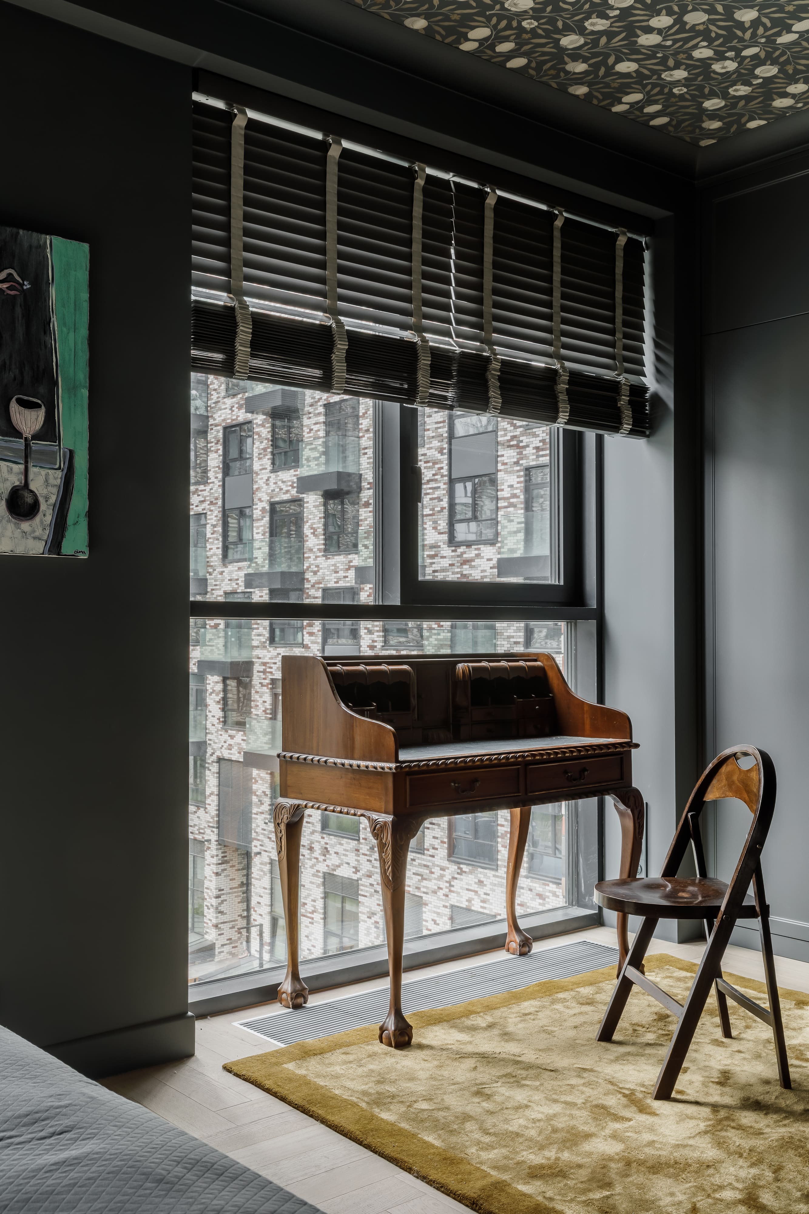 Сергей — потомственный банкир, а Анастасия — физик по образованию, но она интересуется историей искусств и с детства любит винтаж. Благодаря ей в квартире появились антикварные находки: письменный стол на изящных ножках на ножках, зеркало в массивной деревянной раме, туалетный столик, вращающееся кресло с резными деталями и большой немецкий шкаф, напомнивший хозяйке мебель в доме ее родителей в Калининграде.
