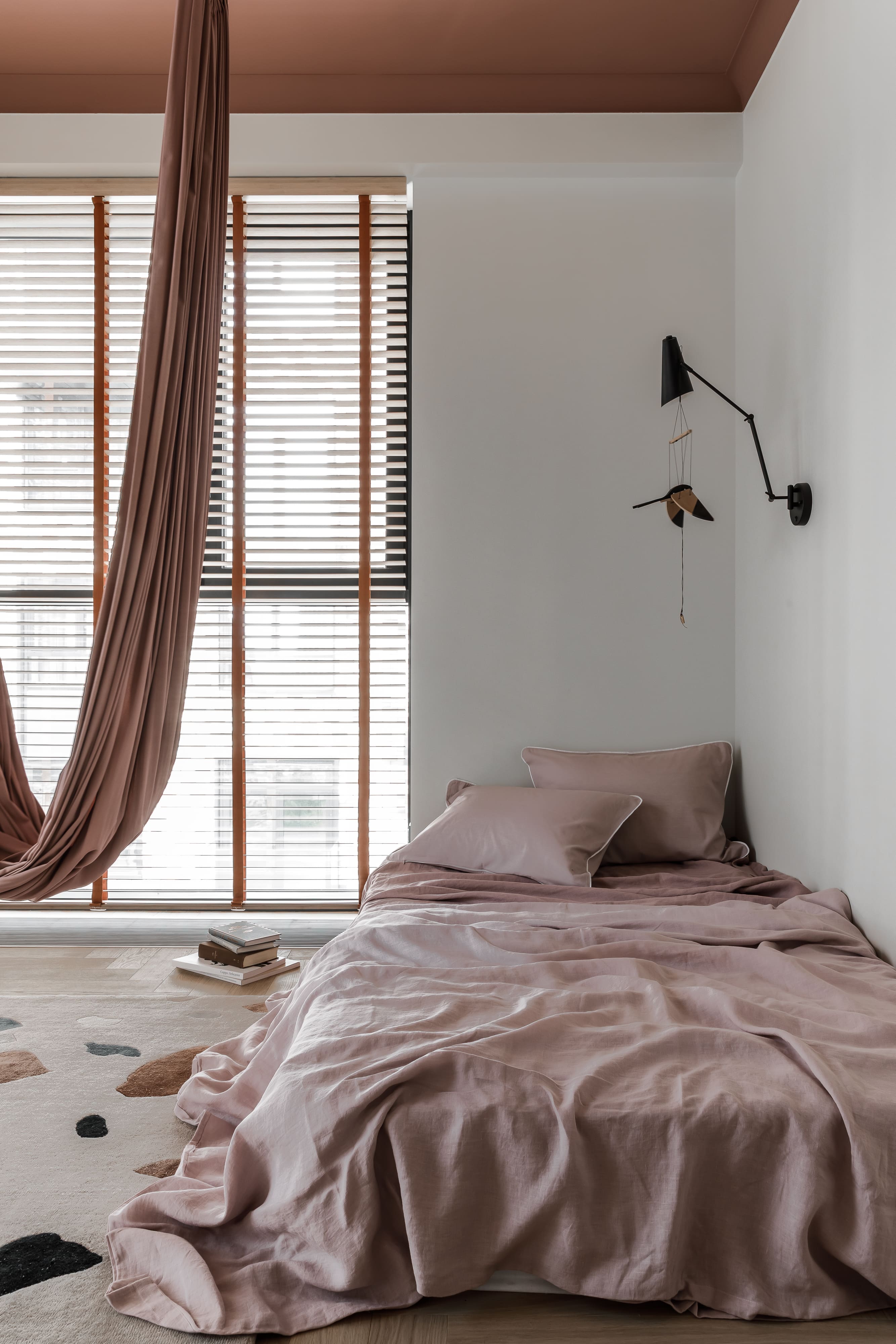 Хозяева квартиры Сергей и Анастасия ранее жили в сталинском доме; они решили переехать из-за дочери-подростка, которой нужна была отдельная комната. «Клиенты просили организовать отдельное пространство для каждого члена семьи, — рассказывает Варвара Шалито. «А вместо большой гостиной мы решили создать три отдельные комнаты: детскую с гамаком, хозяйскую спальню с рабочим местом для хозяйки и кабинет для отца семейства с выходом на балкон. При этом гостиная остается, но в более интимной форме».