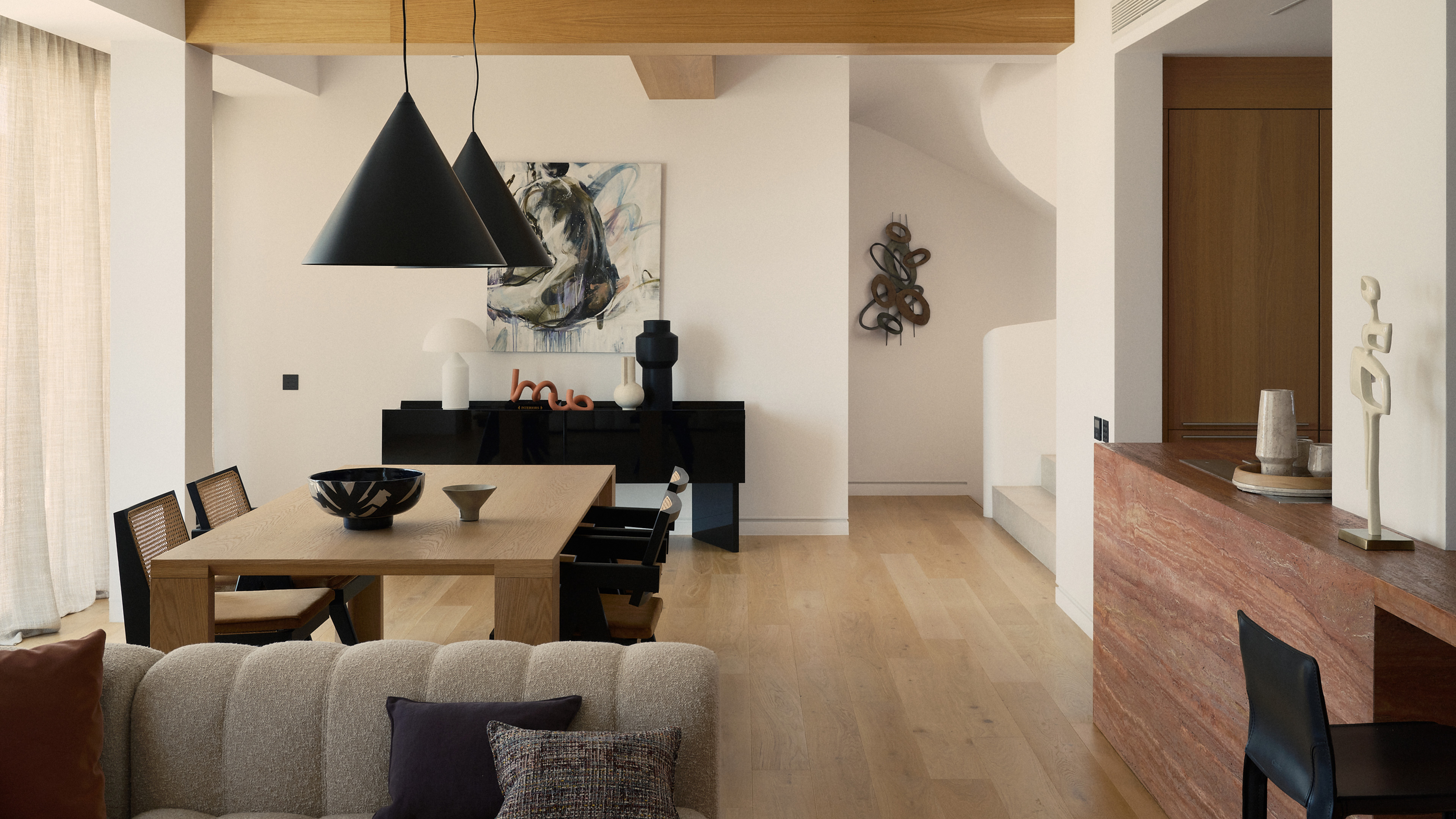 Дизайнер Ольга Солнышкова разработала обволакивающий интерьер квартиры в светлых тонах на 18 этаже ЖК Union Park. Все в этом пространстве подчинено образу жизни пары, дети которой выросли и имеют возможность жить для себя. Интерьер очень индивидуальный и наполнен предметами искусства и винтажными акцентами, которые отражают индивидуальность их владельцев.