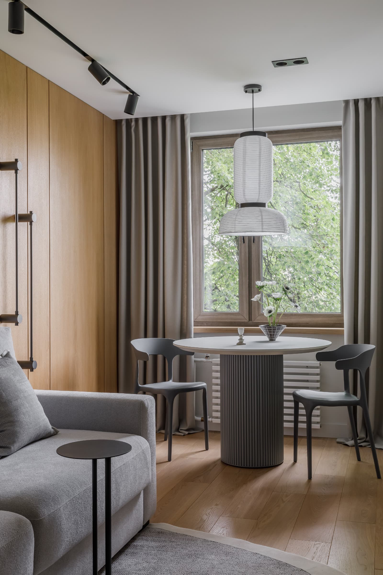 «Первое, о чем я подумал во время замеров, было: «Я хочу впустить сюда много света», — рассказывает автор проекта. — Зелень за окнами была настолько густой, что буквально поглощала свет. Сложность усугублялась планировкой: квартира угловая, расположена над аркой, кухня небольшая, типичная панельная, а стены, которые можно разобрать, всего две. При этом клиенты мечтали об открытом пространстве. Создать ощущение пространства в таких обстоятельствах было настоящей проблемой».