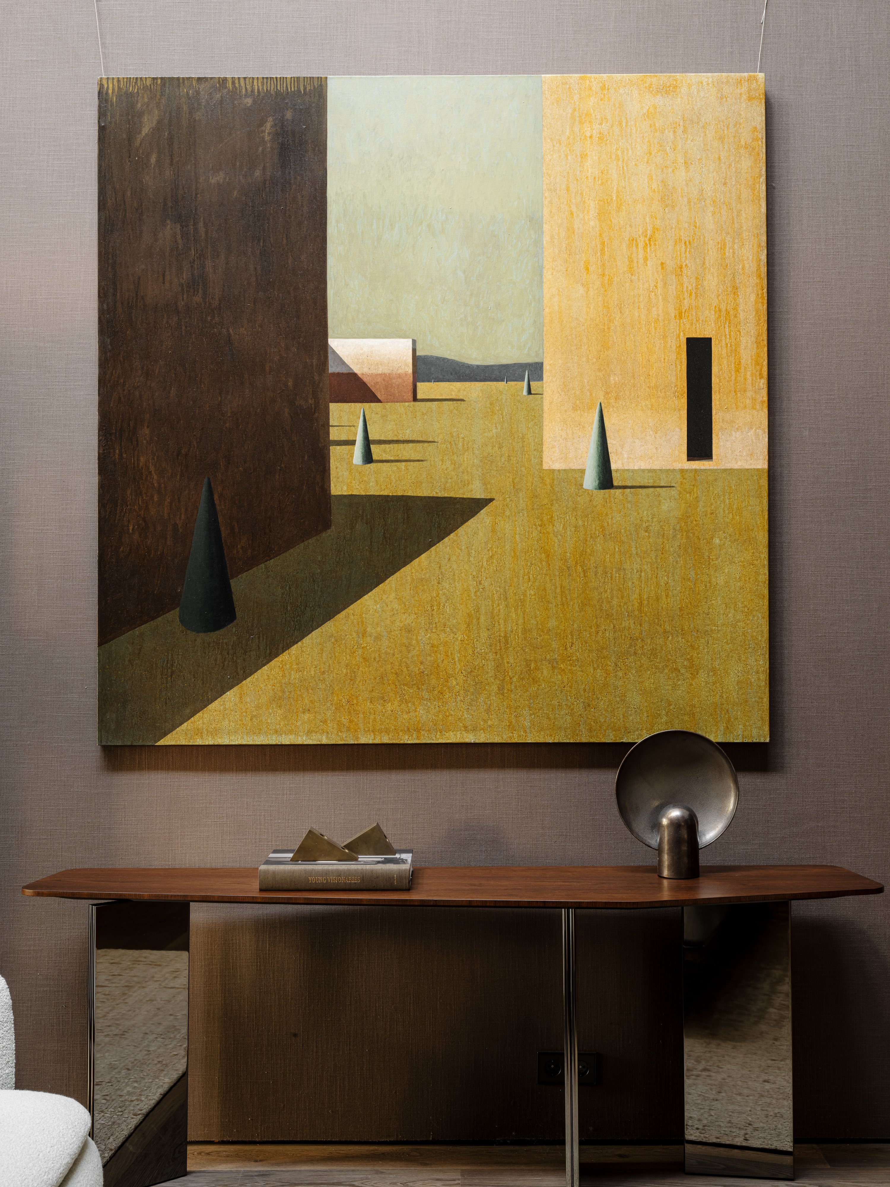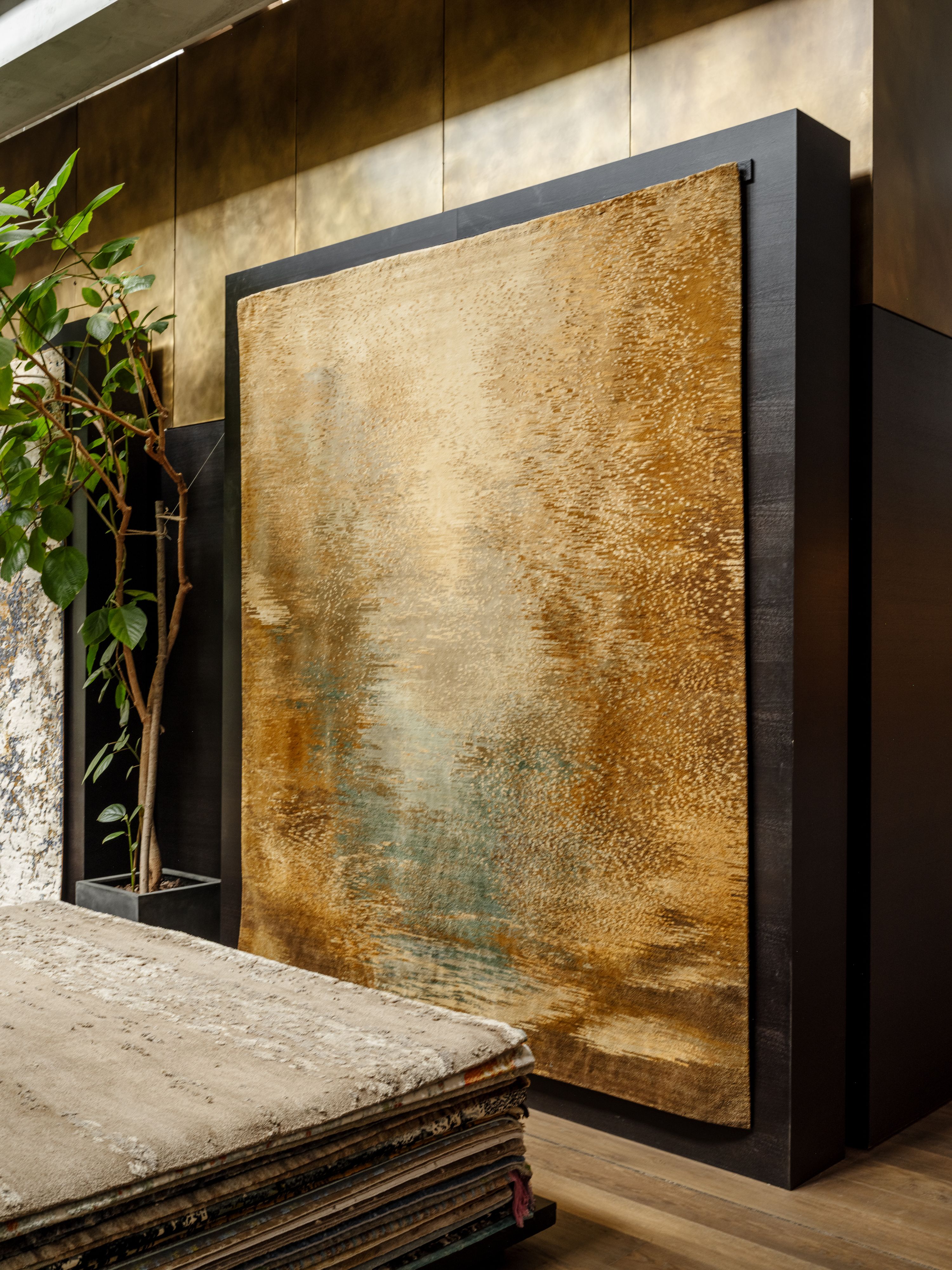 В подборке тканей соединились тактильные текстуры льна от нового бельгийского бренда Bruder, работа с натуральными и нетрадиционными волокнами от Naturtex, а также две новые коллекции Pierre Frey: «пустынная» Deserts и яркая Fantasy, вдохновленная 70-ми годами. Палитру новинок дополняют ткани Dedar со знаменитым синим пигментом Yves Klein и коллекция Sporting от Holland & Sherry с изысканной клубной полоской. В презентации ковров Jan Kath особое внимание уделяется экзотическим материалам и сложным техникам. В работах используются шелк, волокна лотоса, шерсть мериноса и альпаки в сочетании с кроеным ворсом, петлей и рельефом. Флагманом является ковер DOTO, удостоенный премии Red Dot Design Award 2025.